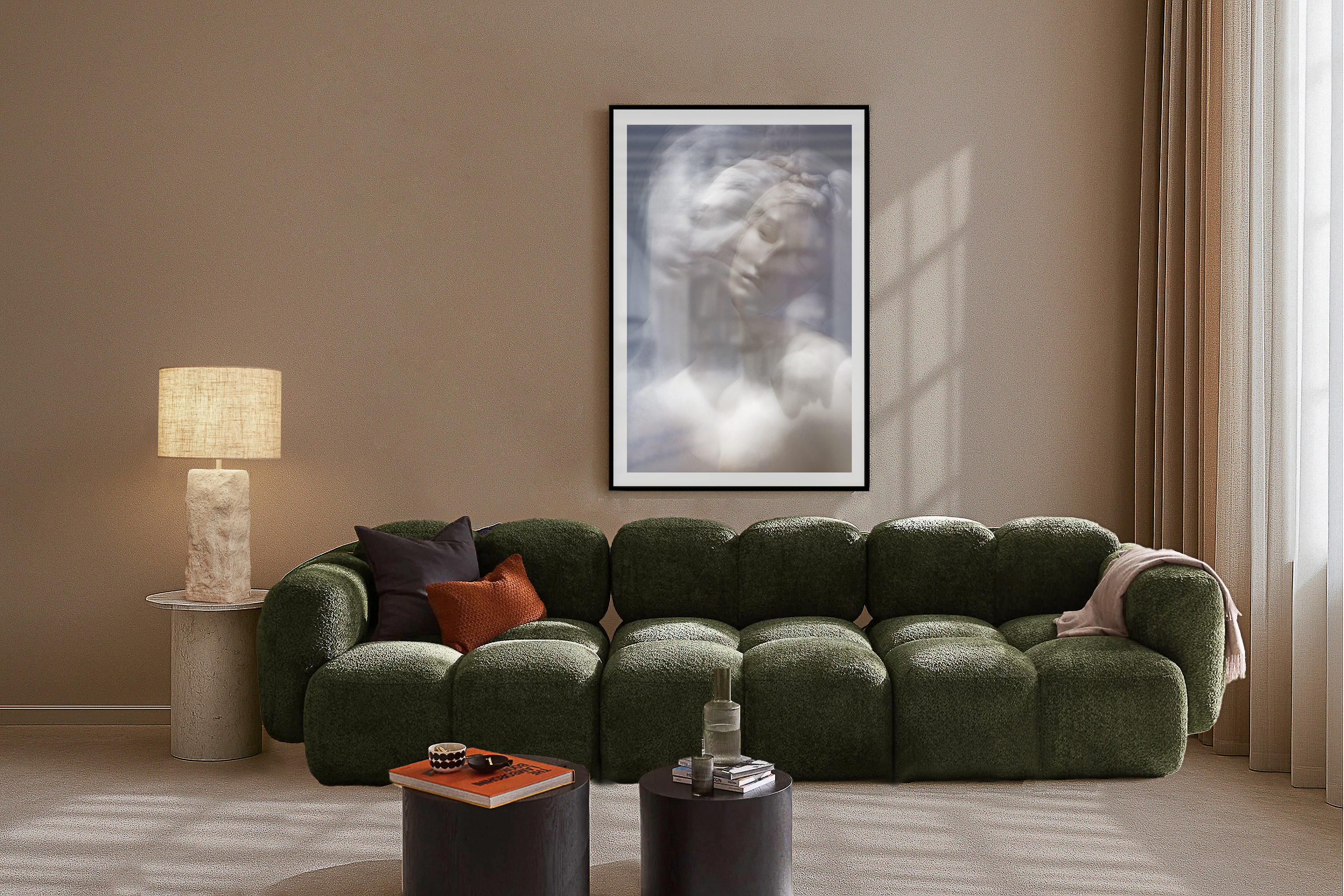 This ethereal image captures the blurred movement of a classical marble sculpture, transforming it into a dreamlike vision that transcends time and materiality. The soft, overlapping contours and ghostly motion evoke a powerful sense of emotion, memory, and introspection—suggesting a soul in transition or a moment suspended between life and stillness. The serene expression of the figure, despite the distortion, invites contemplation on themes of beauty, loss, and the fragility of existence. The photograph’s painterly quality and diffused light further enhance its surreal atmosphere, turning a static object into a living echo of feeling and form. It is both haunting and poetic, merging the permanence of stone with the impermanence of breath.