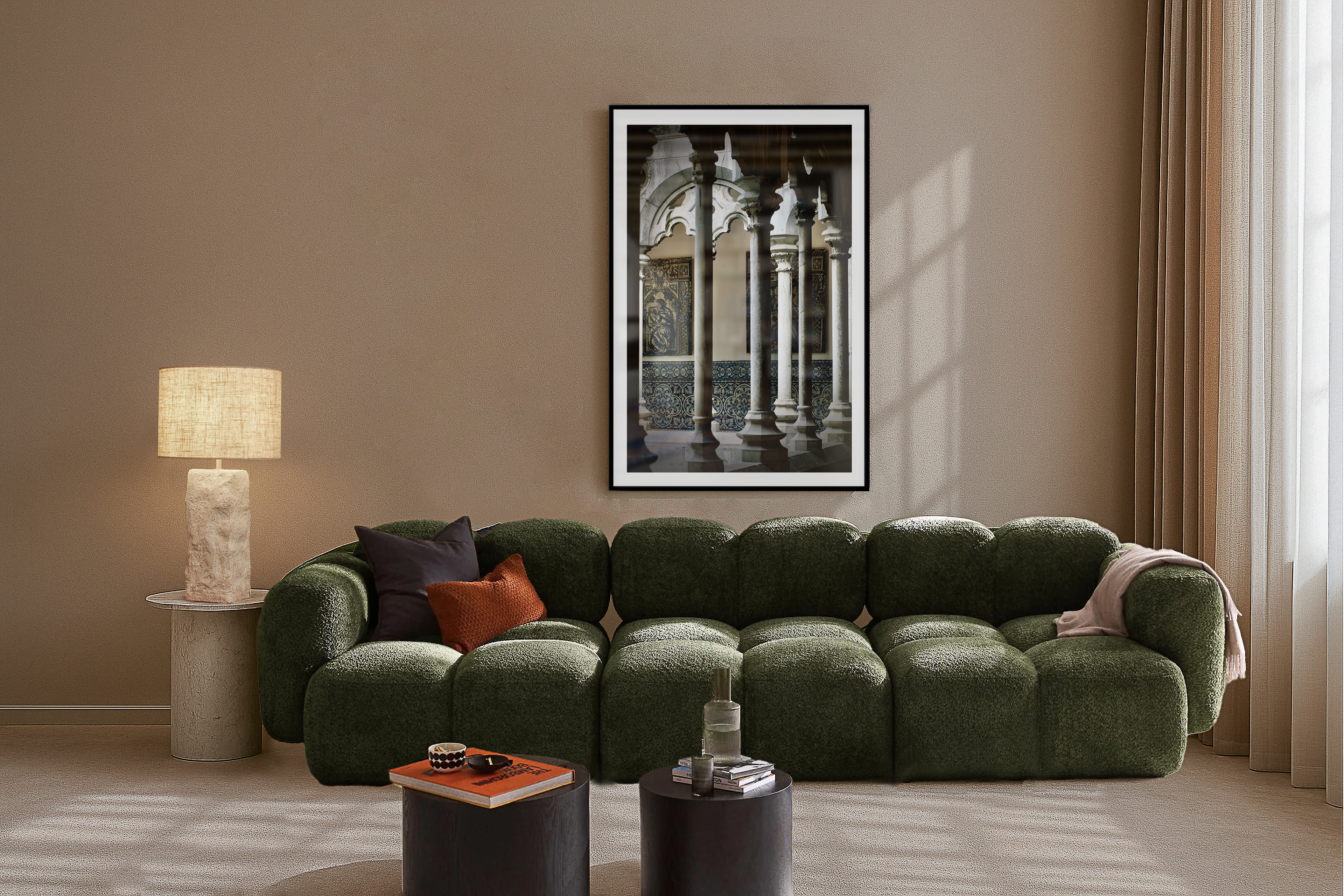 The interior courtyard of the old couvent in Lisbon unfolds like a timeworn tapestry, where the cool, muted stone contrasts with the vibrant hues of azulejos that adorn the walls. These intricate ceramic tiles, painted in shades of cobalt blue, soft yellow, and emerald green, tell stories of faith and history, each tile a glimpse into the past. Sunlight filters through the archways, casting delicate shadows that play upon the tiled surfaces, accentuating the ornate patterns that swirl and flow like whispers of devotion. The air is imbued with a sense of tranquility, punctuated only by the gentle rustle of leaves from the courtyard’s small garden, where ancient olive trees stand sentinel. Here, in this sacred space, the artistry of the azulejos not only beautifies but also connects the present to the rich tapestry of Lisbon’s cultural heritage, inviting reflection and reverence.